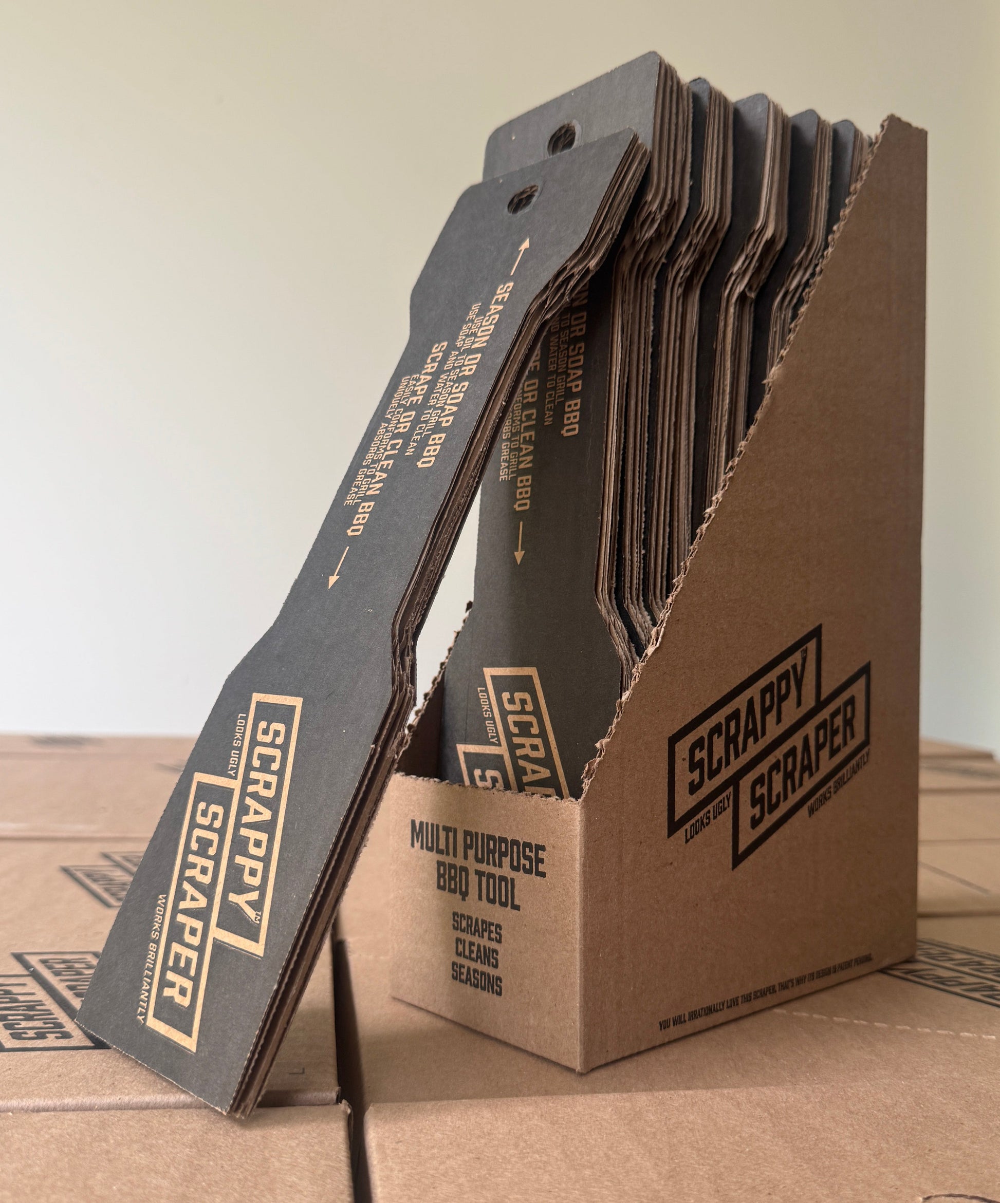 Scrappy Scraper’s power lies in the surprising genius of cardboard. It’s rigid enough to scrape, flexible enough to bend to your grates, and absorbent enough for deep cleaning and seasoning. We harnessed the strengths of a simple material to create a powerful tool that’s effective, healthy, and, being 100% recyclable, kind to the planet.