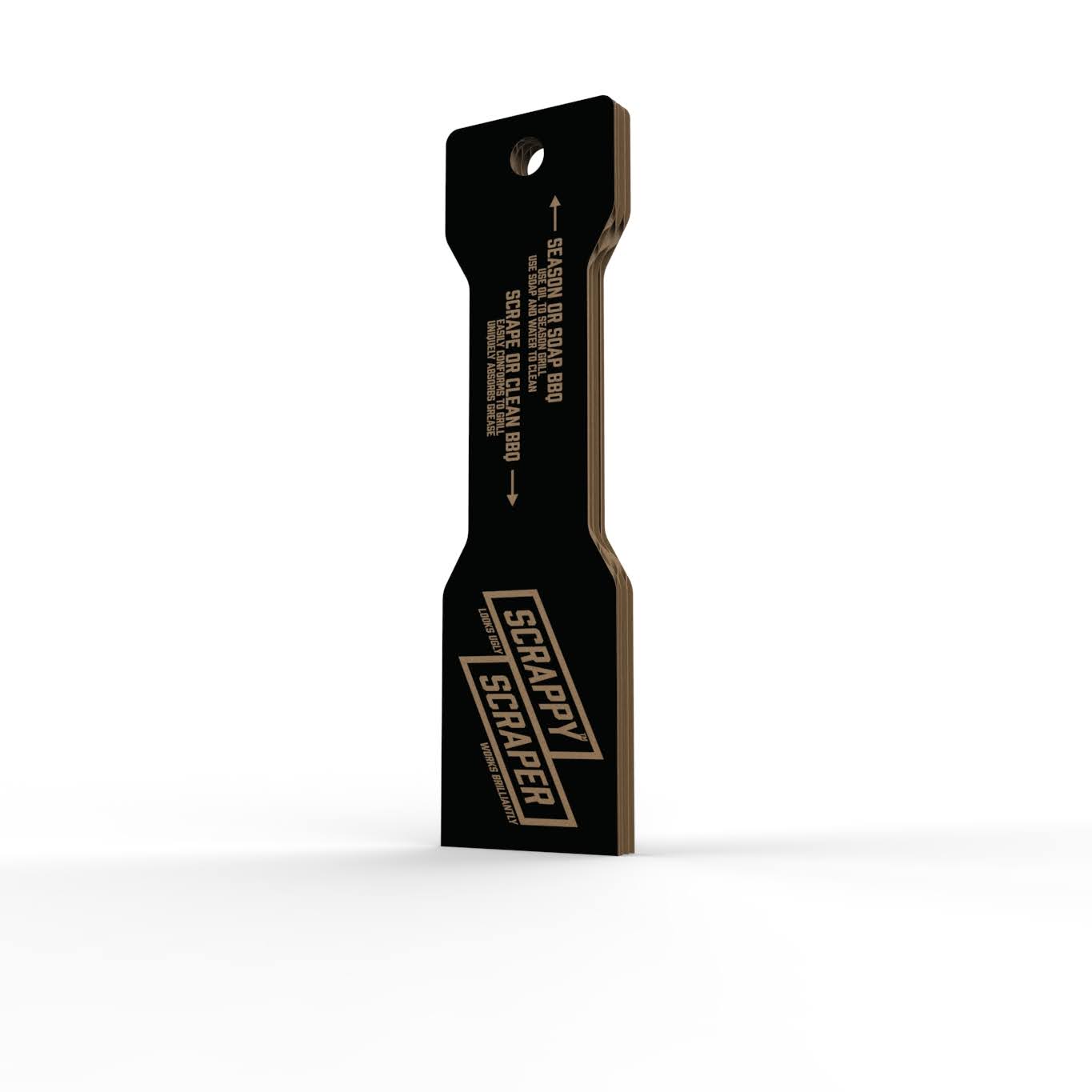 This isn't regular cardboard, this is special Scrappy Scraper cardboard. After countless tests, prototypes and cleans, we created our own proprietary triple-weave construction that's strong and rigid enough to clean even the most stubborn grill.
